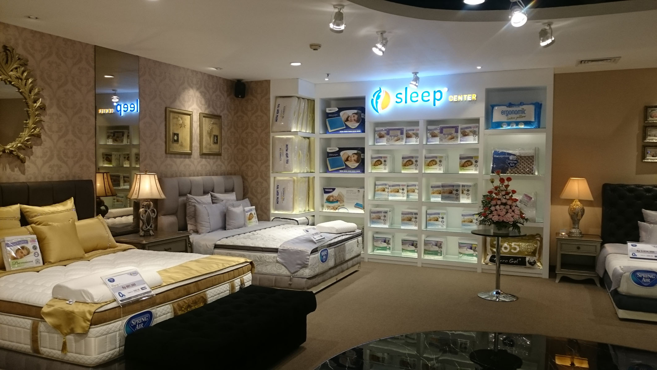 Dengan konsep one-stop shopping, SLEEPcenter ini menyuguhkan kasur dari tipe yang ekonomis hingga premium dengan standar internasional. Merek premium asal Amerika Serikat, seperti Spring Air; Therapedic, kasur premium bergaya minimalis modern yang juga memiliki keunggulan untuk kesehatan; Comforta sebagai kasus merek Indonesia yang tiga tahun berturut-turut memenangkan penghargaan; dan Protect-A-Bed, yang melindungi kasur dari debu, air, dan tungau.