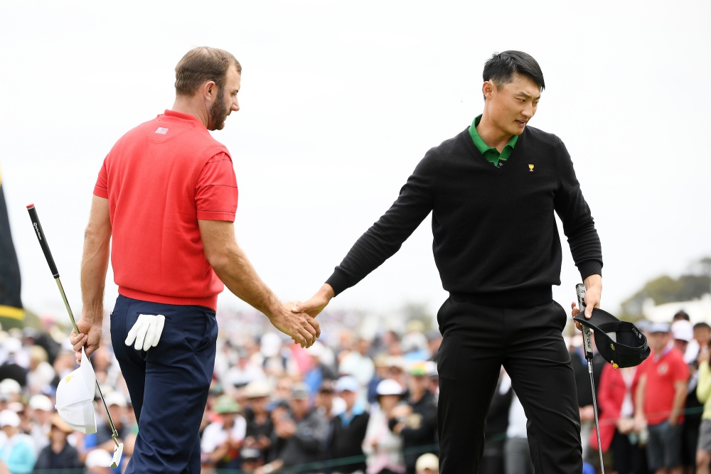 Sebaliknya, pegolf China pertama yang menjadi anggota Tim Internasional tahun ini, Li Haotong, tak dapat menampilkan performa putting yang tajam dan harus menerima kekalahan dari Dustin Johnson.